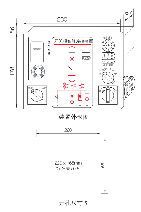HMPD-400CCLAOXX switch cabinet intelligent control device (color screen LCD type) is a multifunctional, intelligent analog dynamic indication device. It is used for 3~35kV indoor switch cabinets, and is suitable for a variety of switch cabinets such as central cabinets, trolley cabinets, fixed cabinets, and ring network cabinets. It can replace the existing primary circuit simulation, live display, and automatic heating and dehumidification controller, and has multiple functions such as circuit breaker opening and closing status indication, energy storage indication, grounding switch indication, trolley position indication, intelligent false protection voice and RS485 communication interface, human body sensing, etc. The device is equipped with an in-cabinet lighting switch, energy storage switch, remote/local switch, and circuit breaker opening/closing transfer switch.